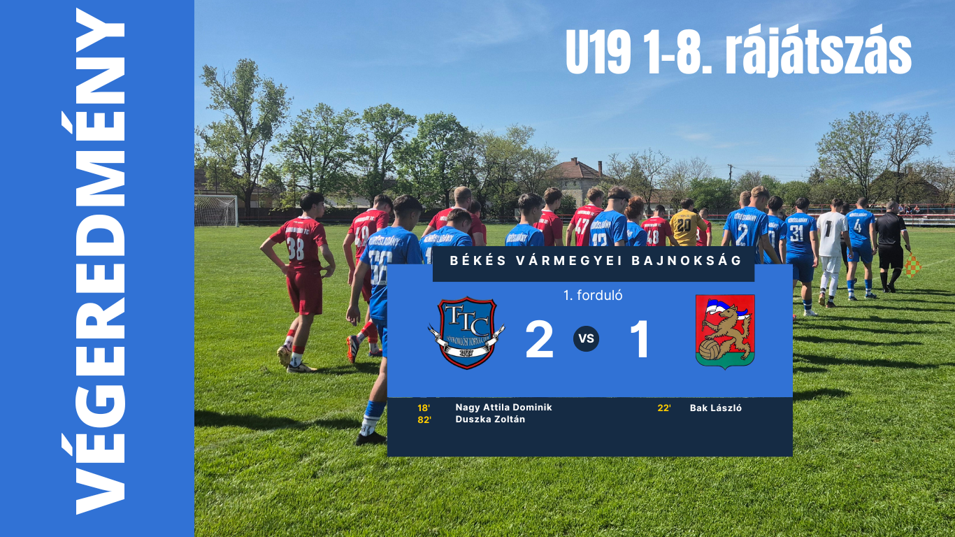 Az U-19-es rájátszás első fordulójában Tótkomlósra utaztunk, ahol végül 2–1-es vereséget szenvedtünk, egy olyan mérkőzésen, amelynek képe alapján több volt ebben számunkra.