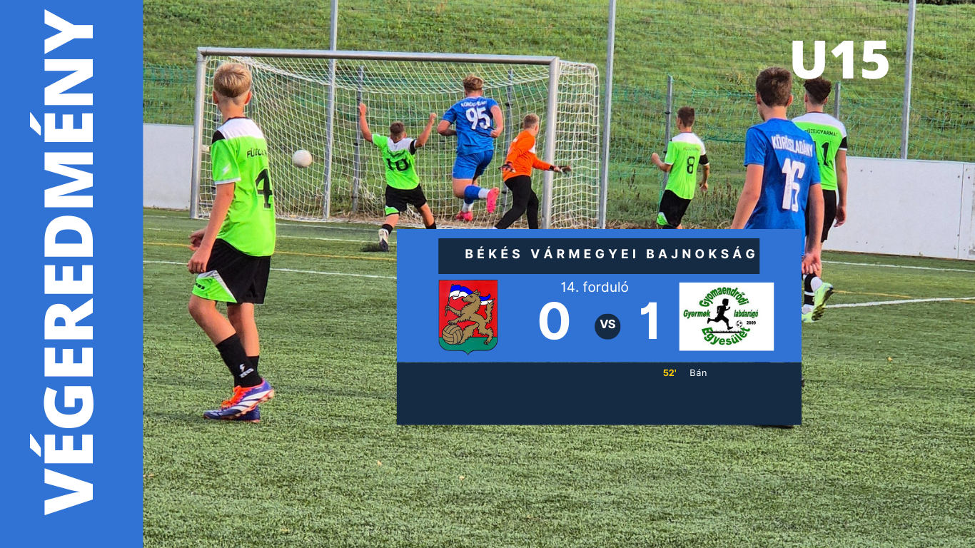 Az U-15-ös bajnokság egyik legfontosabb mérkőzésén a listavezető Gyomaendrődi GYLE csapatát fogadtuk, ahol végül 0–1-es vereséget szenvedtünk, egy rendkívül magas színvonalú és kiélezett rangadón.